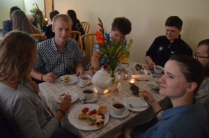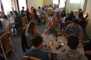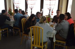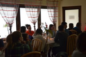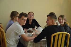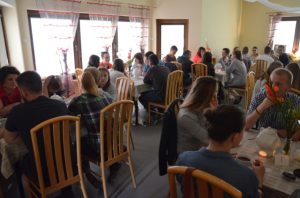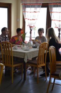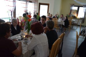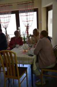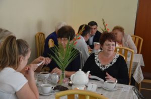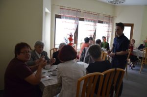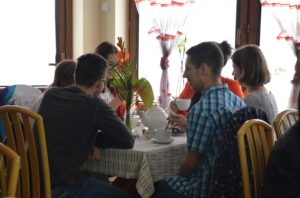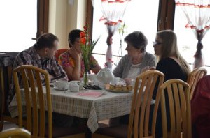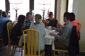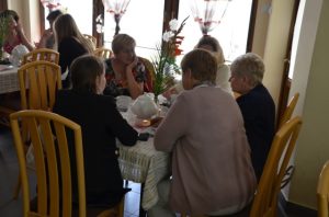 Przy gustownie zastawionych stolikach można było zamówić kawę, czekoladę, herbatę albo ziółka. Wszystko serwowane oczywiście bezpłatnie. Nie zabrakło też pysznych słodkości przygotowanych przez jednego z członków Stowarzyszenia Przyjaciół Brzezin i Podwola. Tematem przewodnim spotkania były sprawy nadprzyrodzone. Dyskusje schodziły na temat cudów, złego ducha, nieba, piekła itp.