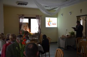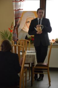 Wystrój świetlicy podczas spotkania stanowił zbiór dzbanków różnej wielkości. Miały one symboliczne znaczenie. To nie piękny wygląd decyduje o wartości. Spragniony człowiek nie nacieszy się z posiadania pustego dzbana. Tak też jest z nami i naszym życiem duchowym. Bóg chce, byśmy przede wszystkim troszczyli się o nasze życie duchowe.