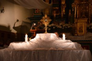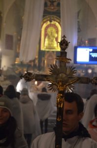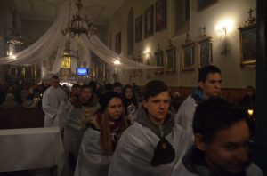 W końcu rozpoczęło się także czuwanie. Wśród niebiańskiej dekoracji zebrani wysłuchali Liturgii Słowa i krótkiej homilii z wypowiedziami różnych świętych. Podczas wystawienia Najświętszego Sakramentu odbyła się modlitwa przebaczenia. Kulminacyjnym momentem było wprowadzenie świętych i błogosławionych. Za ich wstawiennictwem wszyscy modlili się o konkretne łaski. Nie zabrakło także efektów specjalnych działających na wyobraźnię. Młodzi modlili się także w intencji Światowych Dni Młodzieży.