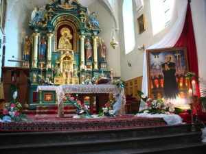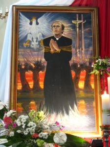 Nasza parafia związana jest z nowym błogosławionym jeszcze z dwóch powodów. Co roku w październiku w kaplicy w Nidzie odprawiana jest msza św. w intencji ks. Popiełuszki, natomiast nasz ksiądz Proboszcz Jan Pragnący za czasów seminarium był razem z bł. ks. Jerzym w wojsku.