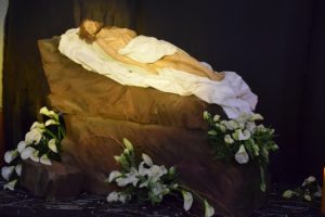O przesłaniu Grobu przypomina napis: „To ja i mój grzech przebiły Cię”. W tym roku wyjątkowo w Niedzielę Zmartwychwstania następuje zmiana dekoracji. Ciemne tło grobu pokrywa jaśniejący welon, a na płycie kamiennej leży płótno z napisem: „Dlaczego szukacie żyjącego wśród umarłych. Nie ma Go tutaj: ZMARTWYCHWSTAŁ”. Nam pozostaje tylko UWIERZYĆ.