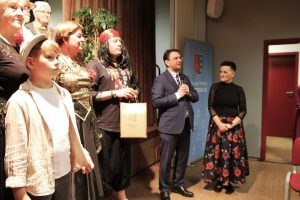 Na zakończenie aktorzy zostali nagrodzeni owacjami na stojąco. Z-ca Burmistrza Pan Marcin Dziewięcki oraz Z-ca Dyrektora SCKiB – Pani Teresa Badowska wręczyli kwiaty opiekunowi Grupy Teatralnej – Pani Mariannie Węgrzyn oraz specjalne podziękowania skierowali dla: