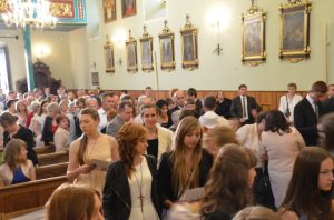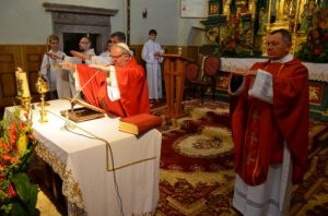 Dnia 18 czerwca 45 młodych parafian otrzymało sakrament bierzmowania. Podczas tej eucharystii ojciec opat Edward Stradomski dokonał także uroczystego wprowadzenia relikwii i przekazał je na ręce księdza proboszcza. W wygłoszonej homilii tłumaczył młodym, na przykładzie świętego brata Alberta, na czym polega wypełnianie chrześcijańskiego powołania do świętości. Oprawę tej eucharystii oprócz bierzmowanych przygotowała Schola parafialna im. św. Stanisława Kostki i Schola Angelo z Piotrkowic. Na koniec wszyscy zebrani w świątyni mogli ucałować relikwie przy śpiewie pieśni ku czci „świętego biedaczyny z Krakowa”. Opuszczali świątynie z pamiątkowymi obrazkami z wizerunkiem brata Alberta z brzezińskiego kościoła.