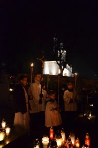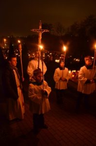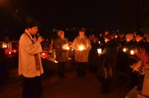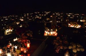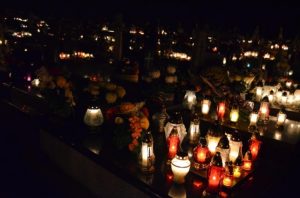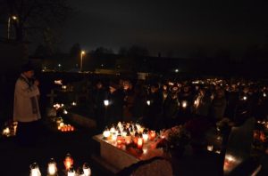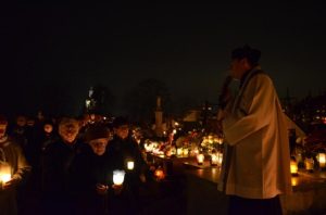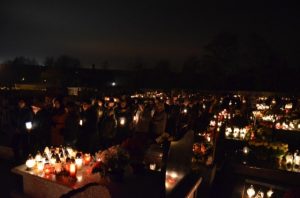 Oprócz czterech mszy tego dnia wierni mieli szansę uczestniczyć także w wieczornym spotkaniu modlitewnym, które rozpoczęło się o godz. 20.00 w kościele. Po odmówieniu Litanii za dusze w czyśćcu cierpiące wszyscy zebrani z lampionami udali się na cmentarz. Pogoda i spokój wyjątkowo sprzyjały duchowi modlitwy. Podczas części chwalebnej różańca przeplatanej pieśniami i koronki każdy mógł zanosić prośby za zmarłych ze swoich rodzin. Był to piękny czas, kiedy już nikt nie gonił, by jak najszybciej obejść wszystkie groby, pozapalać znicze i ustawić kwiaty. Ci, którzy już odeszli otrzymali to co dla nich najważniejsze - modlitwę. Niech odpoczywają w pokoju!