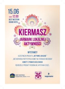 Marianna Węgrzyn, uczestniczka projektu „Sieć wsparcia partycypacji kobiet na terenach wiejskich”, zaprosiła aktywne kobiety z Brzezin do udziału w Jarmarku Lokalnej Aktywności. Został on zorganizowany 15 czerwca przez Best Western Grand Hotel w Kielcach. W jarmarku uczestniczyły panie z działającego od niedawna w świetlicy Klubu Rękodzieła, które zaprezentowały swoje wyroby: kwiaty z bibuły, hafty i decoupage (Marianna Węgrzyn), ozdoby wykonane na szydełku (Małgorzata Zegadło), domowe nalewki (Zofia Baranowska).