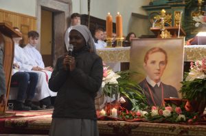 Relikwiarz ufundowała rodzina z Brzezin. Wierni mogli poznać życie nowej patronki dzięki okolicznościowej wystawie. Siostry Klawerianki przeprowadziły także kiermasz na cele misyjne. Oprawę liturgii przygotowała młodzież z parafii.