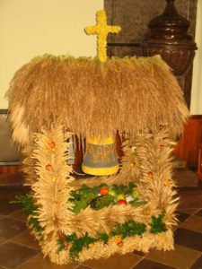 Homilię na mszach świętych wygłosił salwatorianin z Mikołowa koło Katowic, ks. Krzysztof Świętoń. Przypomniał, że niebo nie jest nad nami, w chmurach, a w naszych sercach. Na sumie odbyło się poświęcenie kwiatów i ziół, które zostały przyniesione do kościoła. Przed ołtarzem stały również piękne, pracochłonne wieńce wykonane przez KGW. Kobiety z Brzezin stworzyły wieniec w kształcie tablic z 10-cioma przykazaniami, z Nidy jako dzwon "Ave Maryja", a z Kowali w formie kapliczki z figurą Niepokalanej. Po sumie odbyła się procesja z Najświętszym Sakramentem wokół kościoła.