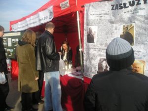 Na stoisku na górnym parkingu członkowie scholi i ministranci sprzedawali znicze-cegiełki, książkę „W cieniu krzyży, w cieniu brzóz” oraz numer 2 biuletynu „Brzezina”. Na tę okazję został także przygotowany specjalny bezpłatny numer pisma parafialnego SANCTUS, które objęło akcję swoim patronatem. Obok stoiska znajdował się kolejny baner z cyklu „Zasłużyli na naszą pamięć”, przybliżający życiorysy interesujących osób spoczywających na cmentarzu w Brzezinach. W tym roku znalazły się na nim takie osoby jak: Władysław Zygadło, Jan „Orzeł” Orliński, Jan Tkacz, Antoni Woźniak (żołnierze walczący za Polskę); ks. Władysław Nosek (proboszcz parafii Sobków); Jakub Stachura, Jan Ściegienny (felczerzy); Aniela i Tadeusz Wotlińscy (nauczyciele); Janina i Józef Osieccy (właściciele ziemscy); Teresa Wieczorek (kierowniczka KGW). Z drugiej strony stoiska umieszczona była tablica ze zdjęciami ośmiu nagrobków odnowionych dzięki zeszłorocznej kweście (stan przed renowacją i po).