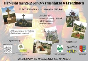 „Gdy gaśnie pamięć ludzka, dalej mówią kamienie”. Takie hasło przyświecało II Kweście na rzecz odnowy cmentarza w Brzezinach, która odbyła się w dniach 30 października – 1 listopada 2010 roku.