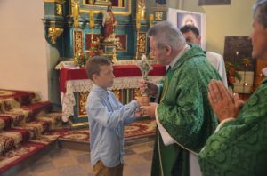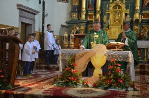 Uroczystość wprowadzenia relikwii świętego Andrzeja odbyła się w niedzielę na Mszy św. o godz. 10.00. Cząstka świętego trafiła do Brzezin z Sanktuarium w Warszawie i została umieszczona w relikwiarzu ufundowanym przez rodzinę z Brzezin. Relikwie wprowadził ks. kanonik Józef Niżnik. Następnie zostały umieszczone na specjalnie przygotowanym ołtarzu. Podczas homilii Kustosz Sanktuarium w Strachocinie przybliżył dokonania świętego za jego życia jak i po śmierci. Przedstawił przykłady licznych łask, które wierni otrzymują za wstawiennictwem św. Andrzeja. Zachęcał także do szczerej modlitwy za jego przyczyną w intencji naszej Ojczyzny. W uroczystościach brała udział także s. Paulina Januchta ze Zgromadzenia Sióstr Franciszkanek Rycerstwa Niepokalanej, którego dom macierzysty w Polsce znajduje się w Strachocinie.