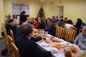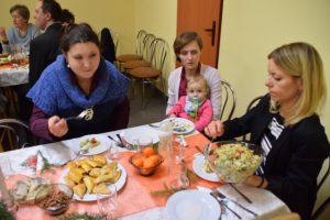 Świętowanie tradycyjnie rozpoczęło odczytanie fragmentu z Pisma Świętego oraz krótka modlitwa. Później był czas na składanie życzeń. Gdy w końcu wszyscy usiedli do stołów, trudno było się zdecydować co wybrać do jedzenia. Ilość i różnorodność dań wigilijnych mile wszystkich zaskoczyła. Posiłek przeplatany był śpiewem kolęd i rozmowami.