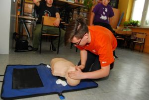 W ostatni weekend kwietnia w szkole w Brzezinach aż roiło się od zużytych bandaży, gaz jałowych i rękawiczek. Wszystko to przez harcerzy z Hufca ZHP Kielce-Miasto, którzy przyjechali na Wędrowniczy Kurs Pierwszej Pomocy i Starszoharcerskie Warsztaty Pierwszej Pomocy. Blisko 30 uczestników z Kielc i okolic uczyło się jak prawidłowo wykonywać resuscytacje krążeniowo-oddechową, unieruchamiać ciało obce w ranie, postępowania w przypadku zatrucia, zawału, wstrząsu... Wszystko odbywało się pod okiem instruktorów Harcerskiej Szkoły Ratownictwa, którzy przybyli z całej Polski.