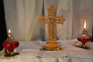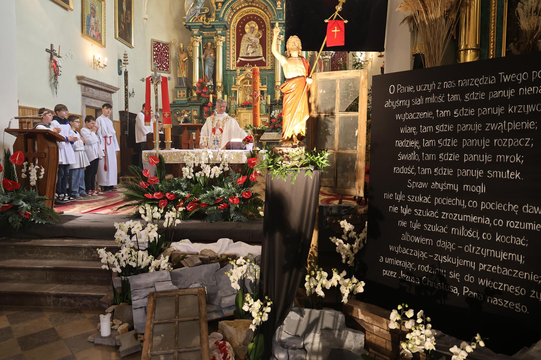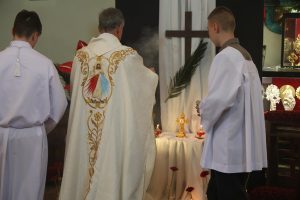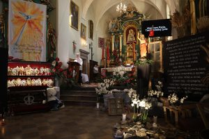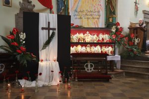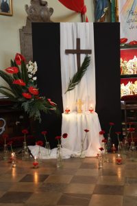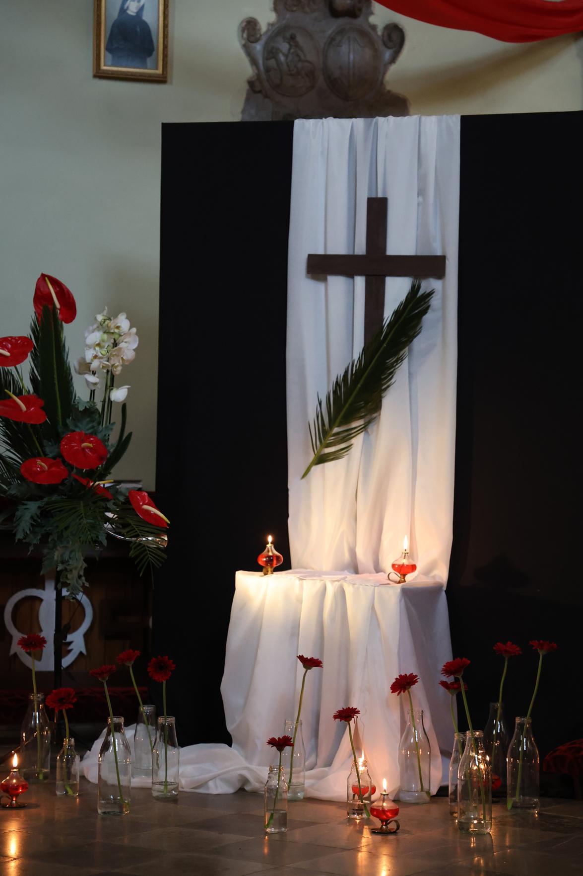 Relikwiarz dla Bł. Sióstr ufundowała osoba z Kowali. Po wprowadzeniu do kościoła został ustawiony na specjalnie przygotowanym ołtarzu. Jego dekorację stanowił krzyż z palmą - symbol męczeństwa oraz 15 czerwonych kwiatów - symbol zbyt wcześnie ściętego życia. Ołtarzyk nawiązywał do tegorocznego wystroju Grobu Pańskiego w Brzezinach, który przypominał ewangeliczną radę "Miłujcie swoich nieprzyjaciół i módlcie się za tych, którzy was prześladują" oraz zachęcał do modlitwy o pokój, słowami św. Franciszka z Asyżu.