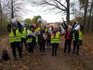 2. Poszukiwanie kartek ukrytych w lesie, na których były informacje o majorze Ignacym Skowronie. Po udanych poszukiwaniach ukryte wiadomości zostały odczytane przez uczniów.