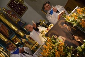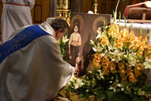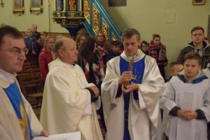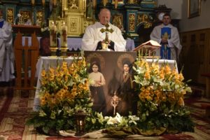 Podczas homilii ks. Henryk Terpiński powiedział m.in: „Chciałbym, żebyście dzisiaj wrócili do domu i mieli poczucie, co wam zostało dane z nieba, za sprawą świętych, których tutaj macie. Oni nie umarli, oni nie są w relikwiarzu, oni są żywi i tu dzisiaj przyszli w roku, w którym mamy hasło ‘Idźcie i głoście’. Oni przyszli, żeby nam powiedzieć o wielkiej miłości Jezusa, wobec, której nie możemy przejść obojętnie. Której nie możemy się przeciwstawić, ani się buntować. Możemy tę miłość tylko przyjąć, bo jest jedyną szansą, żeby się po prostu zbawić.”