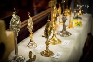 Na zakończenie, każdy mógł indywidualnie oddać cześć wszystkim świętym i błogosławionym, przez ucałowanie relikwii. Ich imiona, cicho wypowiadane przez osoby trzymające relikwiarze, przypominały nam imiona zapisane u Boga, imiona tych, do których należeć ma Królestwo Niebieskie. Dbajmy więc, aby i nasze znalazły się wśród nich i zostały odczytane w dniu Sądu Ostatecznego… Przy wyjściu oprócz orędownictwa świętych za nami w Niebie, każdy otrzymał „coś słodkiego od świętego” – małe ciasteczko z zapisanym przesłaniem naszych patronów. To zapowiedź tego, co otrzymamy w Niebie.
