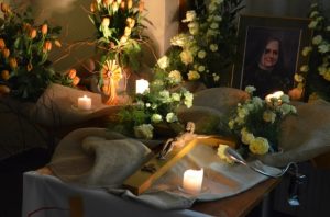Tym razem sala w świetlicy wyglądała inaczej. Nie było szczególnej dekoracji. Na stolikach zamiast filiżanek były szklanki, a zamiast kwiatów suche gałązki. Tylko relikwie i leżący obok krucyfiks były otoczone kwietną dekoracją. Nie stało się to bez powodu. Klimat surowej sali miał wprowadzić w temat przewodni - ubóstwo. Po tych ścieżkach prowadziła zebranych bł. Bernardyna Jabłońska.