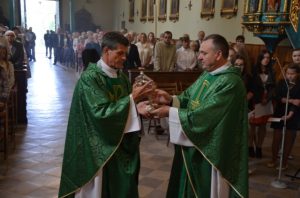 Suma w niedzielę 21 czerwca 2015 roku w Kościele pw. Wszystkich Świętych była wyjątkowo uroczysta. Na jej rozpoczęcie do świątyni zostały wprowadzone relikwie pierwszego stopnia św. Józefa Sebastiana Pelczara. Nie przypadkowo dokonało się to w miesiącu czerwcu poświęconym Najświętszemu Sercu Pana Jezusa, ponieważ nowy patron to Boskie Serce szczególnie ukochał. Święty Józef Pelczar miał bogaty życiorys. W ciągu dwóch i pół roku zdobył dwa doktoraty, wykładał w seminarium przemyskim, był profesorem i rektorem Uniwersytetu Jagiellońskiego. Był dobroczyńcą, utworzył Bractwo NMP Królowej Korony Polskiej, wydał wiele książek. W 1894 r. założył Zgromadzenie Służebnic Najśw. Serca Jezusowego i przez 25 lat pełnił posługę biskupią w Przemyślu. Jego życie przepełnione było pracą i modlitwą.