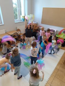 We wrześniu 2023 roku na ekoodżywaniu zapoznali się m.in. z tematem "Pachnący i smaczny Pierwszy Dzień Jesieni". Warsztaty muzyczno-tanecznie spędzili na powtarzaniu repertuaru sprzed wakacji. Na rękodziele podjęli różne interpretacje tematu związanego z Dniem Kropki. Warsztaty "Małych Społeczników" pomogły w nauce nowego słowa: bezinteresowność i przypomnieniu sobie innych, związanych z wolontariatem.